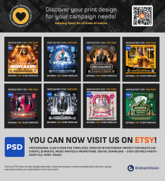 Professional Club Flyers PSD Templates created in Photoshop. Perfect for nightclub events, DJ nights, music parties & promotions. Digital download – easy editable Photoshop file, print-ready.
