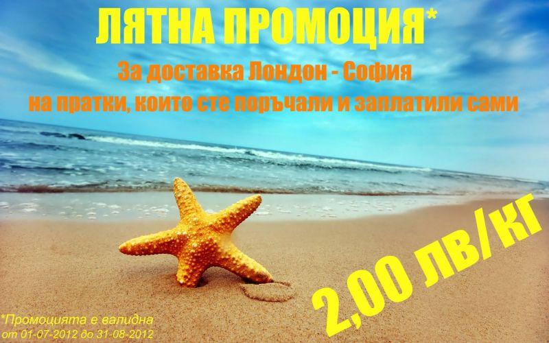 Възползвайте се от лятната промоция - 2,00 лв за 1 кг при превоз на ваши покупки от Лондон до София. Курсовете вече тръгват два пъти седмично. Как да пазарувате сами и да използвате услугата "транспорт" - вижте тук http://www.kupiotuk.eu/