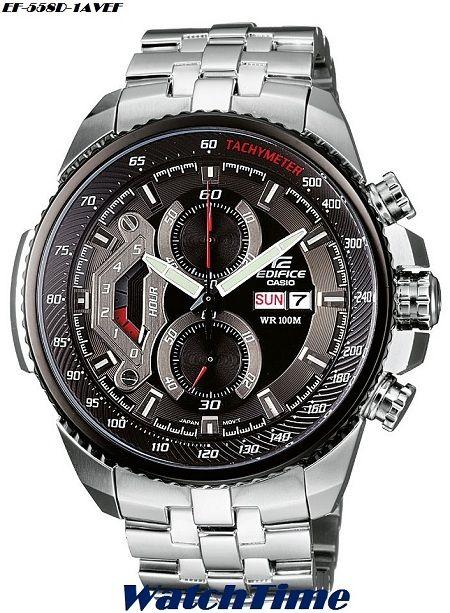 http://4as.smartchoicebg.com/-casio-watches-chasovnici-90-/-casio-series-edifice-120-/-Men-s-Watch-Casio-Edifice-Chronograph-myjki-chasovnik-EF-558D-1AVEF-#.UJGtaYZfEXU Мъжки часовник от серията Casio Edifice Chronograph EF-558D-1AVEF Хронограф: 1 / 1 секунда. Измерване на капацитета: 4:59'59 Показващ ден и дата на дисплея Аналогов: 3 стрелки(час,минута,секунда) Минерално стъкло Корпус от високок